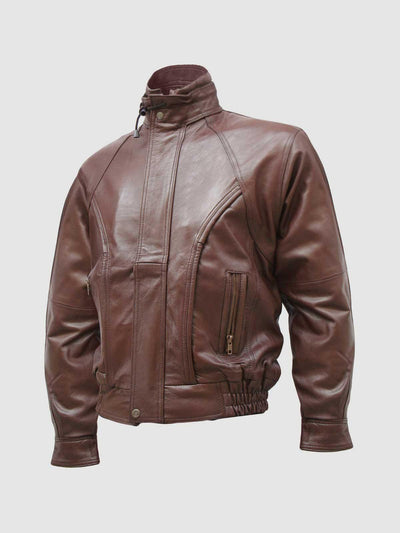 Chocolate Brown Leather Bomber Jacket Men